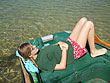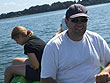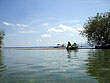 um- runden und Carsten hatte schon wieder die Ruder in der Hand. Der Kirchturm des Klosters war nahezu von jedem Punkt rund um die Insel sichtbar. Eine einsame Insel haben wir ebenfalls entdeckt. Dort saß passend zum Thema ein einsamer Mann, welcher im Gegensatz zu Robinson Crusoe nicht unter Palmen, sondern sich |