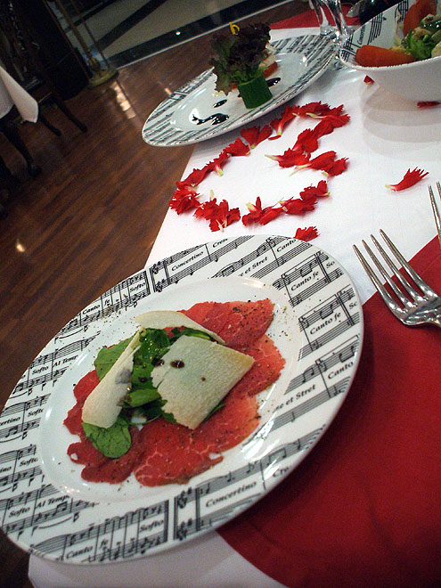 Die Vorspeisen: Carpaccio, Tomate-Mozarella und Salatteller