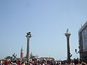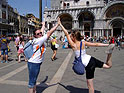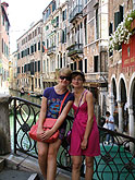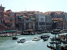 konnten wir uns endlich orientieren und liefen daher schnur- stracks zu den berühmtesten Plätzen. Und siehe da, schon bald stan- den wir vor der Rialtobrücke. Sehr unansehnlich fanden wir die zahl- reichen Graffiti-Kritzeleien an der Brücke, sie wirkte insgesamt etwas vernachlässigt und schmuddelig für eine weltberühmte Sehenswürdig- keit. Im Fernsehen oder auf den Postkarten bekommt man ganz offen- sichtlich entweder nur die Schokoladenseite präsentiert oder man ver- bessert den Eindruck mittels Bildbearbeitung. Bezüglich bekannter Fakten über Venedig sind wir uns aber auf jeden Fall einig: der von vielen Sommerbesuchern dieser Stadt beschriebene Gestank war bei unserem Besuch nicht da! |