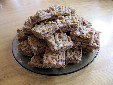 20 Minuten backen. Den fertigen Kuchen in Rechtecke schneiden und auf einer