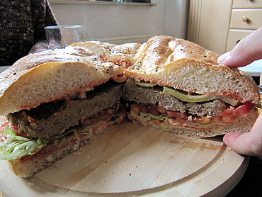 dazugeben und alles ordentlich durchkneten. Zum Schluß einen Fleischfladen