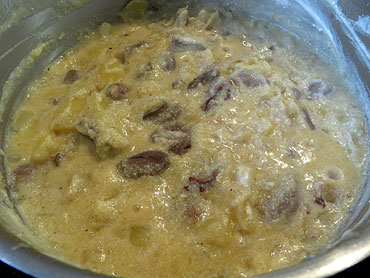 15 Minuten schmoren lassen. Danach Saure Sahne oder Joghurt dazugeben, gut