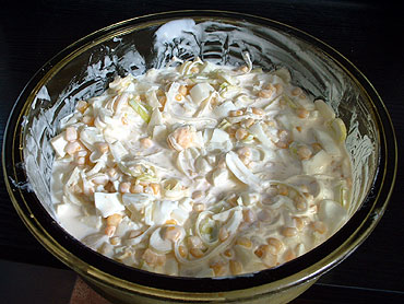 vermischen und salzen. Den Salat kühl stellen und etwa 3 Stunden ziehen