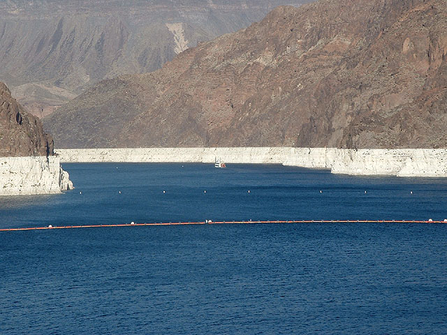 Wie riesig das weiße "Band" ist, sieht man im Vergleich zum Raddampfer in der Bildmitte