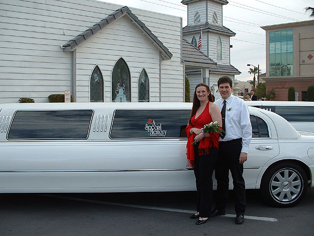 Frisch getraut fotografiert uns unser Fahrer Jimmy vor der Stretchlimo und der Kapelle