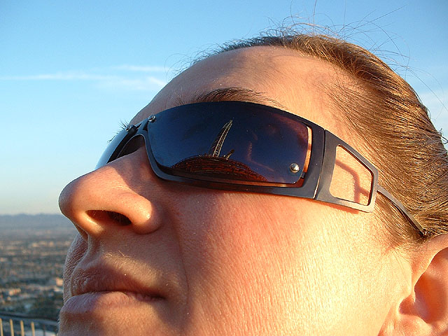 Olga schaut sich die Achterbahn und den "Big Shot" Free-Fall-Ride an