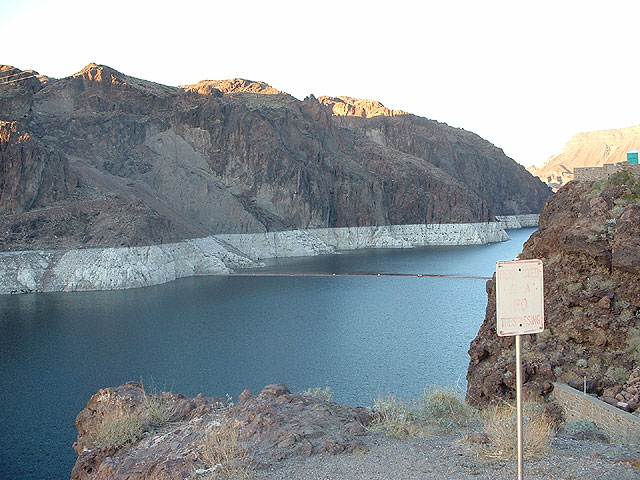 Was wir aus dem Flugzeug sahen, liegt nun vor uns: der Lake Mead mit weißem Streifen