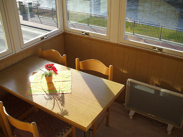 Unser Frühstückstisch im Erker mit herrlicher Aussicht nach drei Seiten