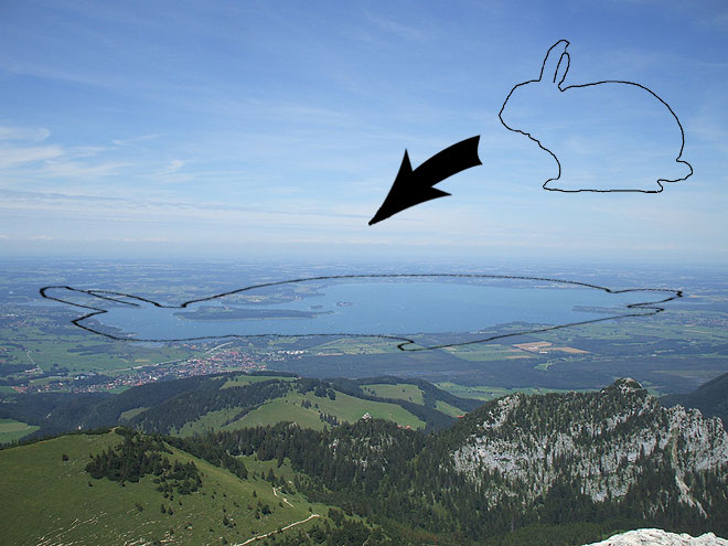 Hier der Beweis: der Chiemsee ähnelt einem dicken Hasen (siehe auch Bild unten)
