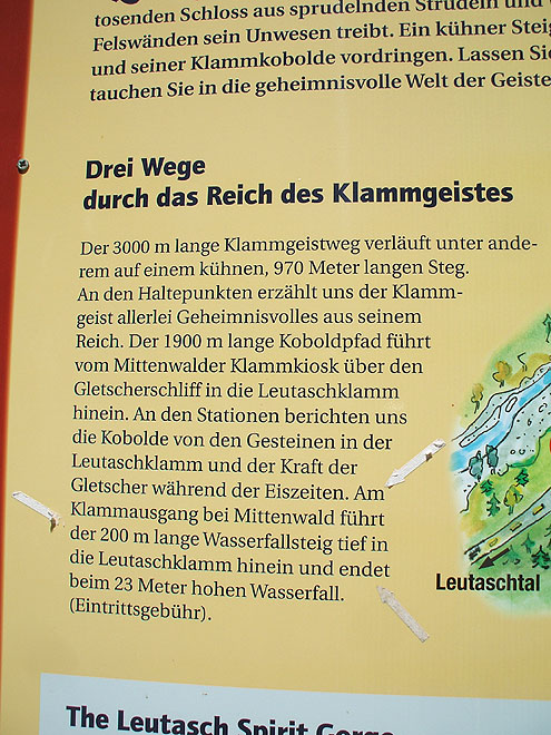 Zwei getrennte Wege in der Klamm: ein alter mit Wasserfall und ein neuer mit großer Höhe