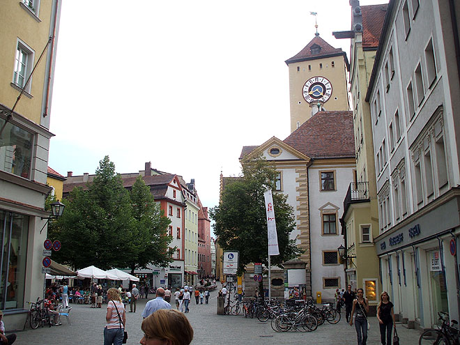 ... mit seiner schönen Architektur (rechts: der Uhrturm des Alten Rathauses) ...