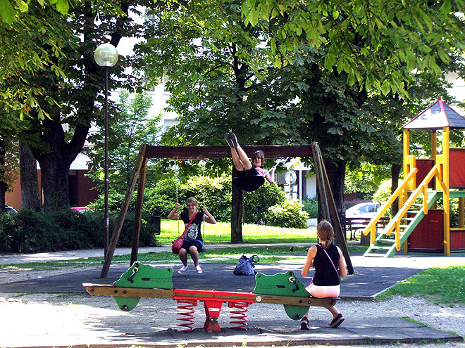 Auf dem Spielplatz werden selbst Teenager wieder zu Kleinkindern !