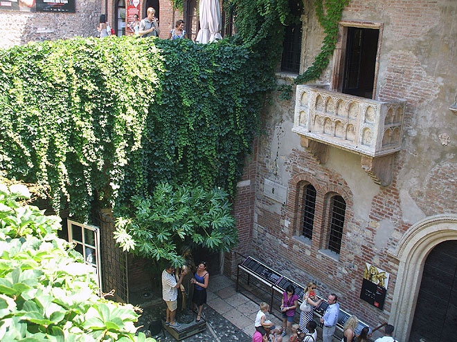 Wir flüchteten auf die Dachterrasse (unten in der Mitte steht die Bronzefigur Julias)