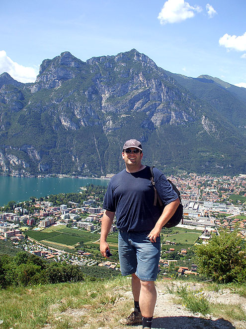 Carsten vor dem Panorama des Monte Englo und Riva del Garda