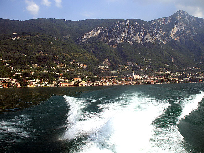 Typisch Gardasee: am Ufer große und kleine Siedlungen und dahinter lange Bergmassive