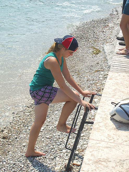 Stephanie testete aber zunächst mal Wassertemperatur und -qualität - Urteil: kalt !