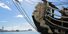 del Parque und die Hafenanlage mit Luxusliner, Katamaranfähre sowie dem Die Kathedrale von Malaga hat erstaunlicherweise nur den Namen "Cathedral" und | ![]() |