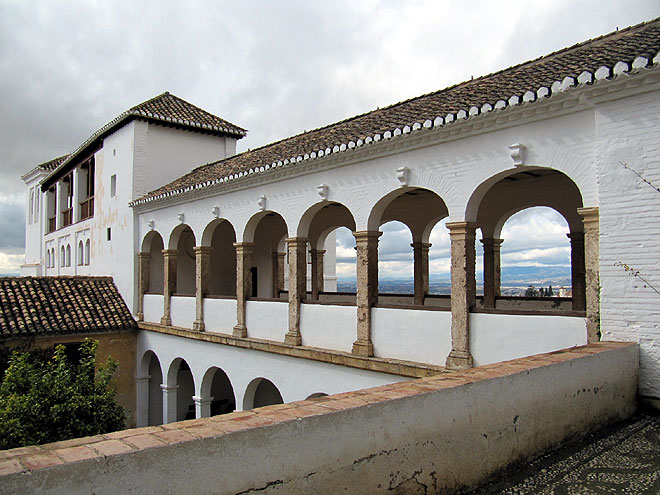 Die Bögen- und Säulengänge bieten immer wieder einen Rundumblick über die Anlage