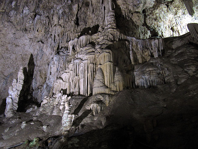 Stalagmiten, Stalagtiten und Stalgnaten soweit das Auge reicht