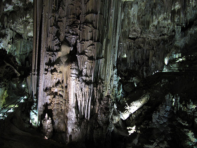 Der mehr als 60 m hohe und ca. 18 m breite Stalagnat im "Raum der Überschwemmung"
