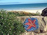 und die beiden bedeu- tendsten Fahnen des Landes ziert: die australische und