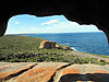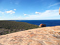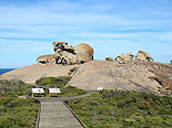 wir noch mehr Naturwunder dieser Insel erkun- den wollen, müssen wir leider schon wieder auf- brechen und gehen zurück zum Parkplatz. Auf dem Weg zu den Remarkable Rocks (diese Fel- sen konnten wir sogar schon vom Admirals Arch aus sehen) biegen wir noch einmal ab, um einen |