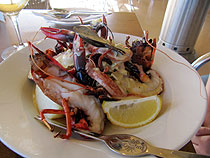 großzügigen Außenanlagen werden uns leider vorenthalten, statt- erfahren haben, ist es definitiv an der Zeit, das Angepriesene auch zu sich zu nehmen. Im Restaurant bestellt Olga sich ein Glas Two Whee- ler Creek-Chardonnay und einen Teller Marron (insgesamt 6 Hälften), während Carsten sich mit einem saftigen Steak eher als Fleischliebha- ber outet. Das Essen ist ausgezeichnet - der Tipp von Marina und Sa- scha ist Gold wert - und einfach alles, vom Fleisch über die Krebse bis zum Gemüse und den Kartoffeln, ist unbeschreiblich lecker. Da wir allerdings außerhalb der Saison und mitten in der Woche hier sind, ge- hören uns 50% der Aufmerksamkeit des Personals, die andere Hälfte gilt dem asiatischen Pärchen aus dem roten Auto. |