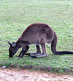 Sinne des Wortes das nächste Tier über den Weg: ein stachelbe- wehrter Echidna schnauft (wir haben es durchs offene Fenster gehört) eilig über die Straße. Was jetzt noch fehlt ist endlich mal ein Känguru, denn schließlich trägt die Insel ja sogar deren Namen. |