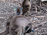 sehr vorsichtig. Ein Wallaby kommt auf Olga zu, um zu sehen, ob sie etwas Leckeres
