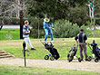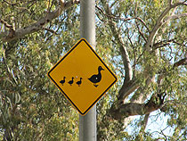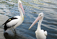 weitere Laufpause verdankt sie drei asiatischen Anglern an einem Steg, denn entweder ihr Hobby oder ihre Anwesenheit haben recht verfressene Ge- sellschaft angelockt. Ganz dicht neben den Männern stehen zwei Pelikane. Ein perfekte Chance für uns, diese großen Vögel mal aus nächster Nähe be- trachten zu können, denn unsere letzte Pelikansichtung war auf Kangaroo Is- land, wo die Tiere allerdings hoch auf einem Leuchtmast Platz genommen hat- ten. Aus dieser Distanz sehen ihre Augen durch die gelbe Umrandung ziemlich streng aus und ihre Schnäbel haben etwas Respekteinflößendes. |