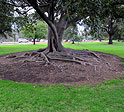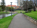 der Einkaufswelt gelangen wir in die Rundle Street, wo jede Menge Res- taurants und Cafés für jeden Geschmack zu finden sind. Die Besonderheit sind die Fassaden der Häuser nach dem Vorbild der viktorianischen Architek- tur. Wenn wir es nicht besser wüssten, hätten wir sogar das Gefühl, uns im French Quarter von New Orleans verlaufen zu haben, so ähnlich wirken die verschnörkelten Holzanbauten auf uns. Am Ende dieser Straße kommen wir direkt auf den Botanischen Garten von Adelaide zu. Marina hat uns im Vorfeld einen Spaziergang darin sehr ans Herz gelegt und da wir das nun zeitlich gut einrichten können bzw. ohnehin auf dem Weg zurück zum Auto sind, wählen wir eine Strecke durch den kostenlosen Park. |