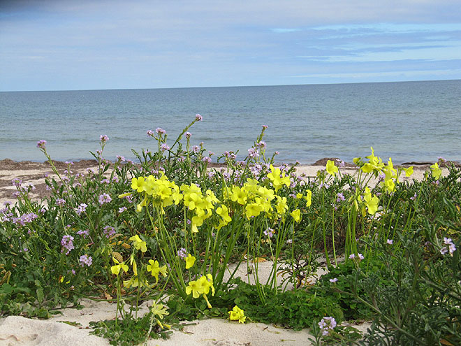 Es blühen sogar Pflanzen direkt auf dem Sandstrand - wohl gemerkt: wir haben Winter !