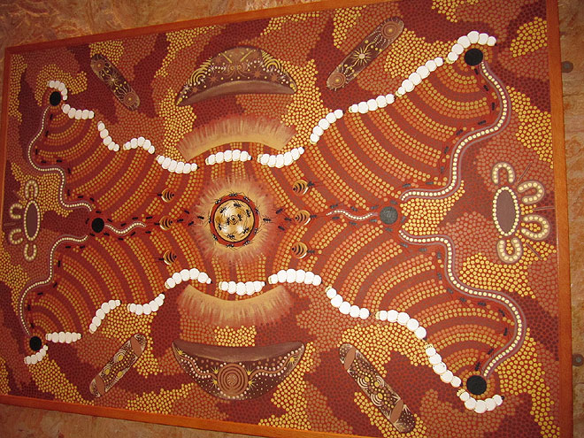 Aboriginal-Kunst (Dot-Painting) als Wandbild