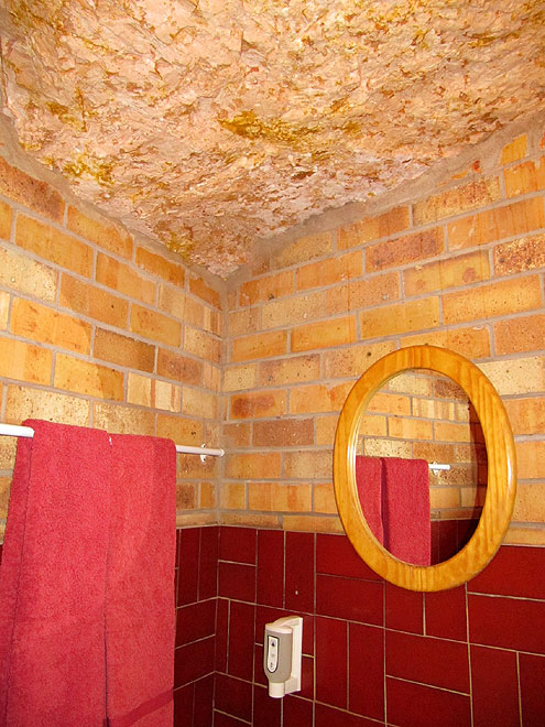 Im Bad vermischt sich Gemauertes mit echter Höhlendecke