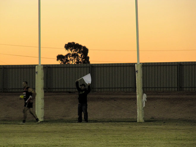 Der wichtigste Schiedsrichter auf dem Feld zeigt die Wertigkeit des Tores - hier nur 1 Punkt