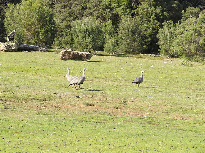 Diese Cape Barren Geese begrüßen uns am Eingang des Flinders Chase-Nationalparks