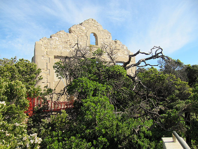 Die Reste eines Steinhauses, in der die Familie des Leuchtturmwärters wohnte