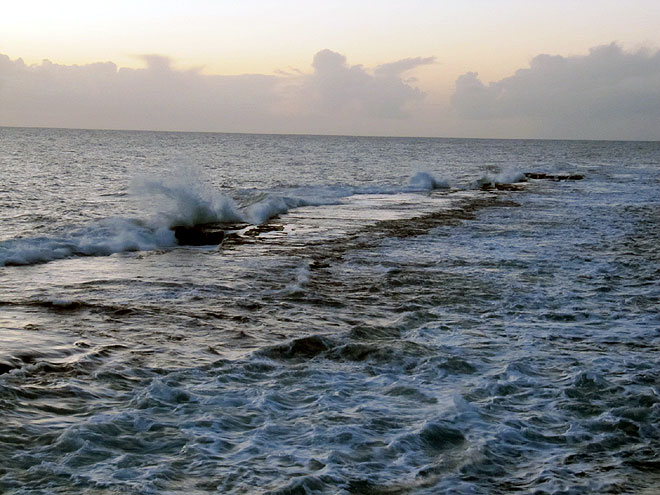 Die Steinwand fungiert als vorgelagerter Wellenbrecher und bietet ein tolles Schauspiel