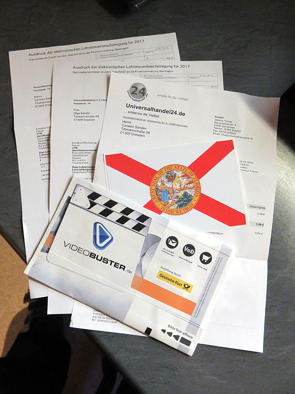 eingestreicht werden), die DVD-Lieferung für den heutigen Abend und die kleine