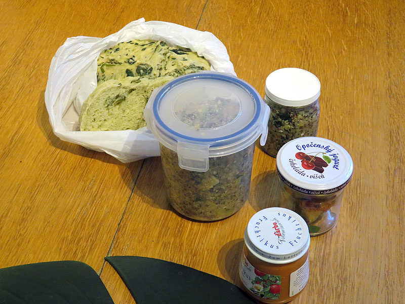 von Carsten: Resteessen ... Olgas Chefin hat heute ihren Ausstand gegeben:Quinoasalat, selbst gemachtes Spinatbrot, Kartoffeltortilla und Rote Linsensuppe