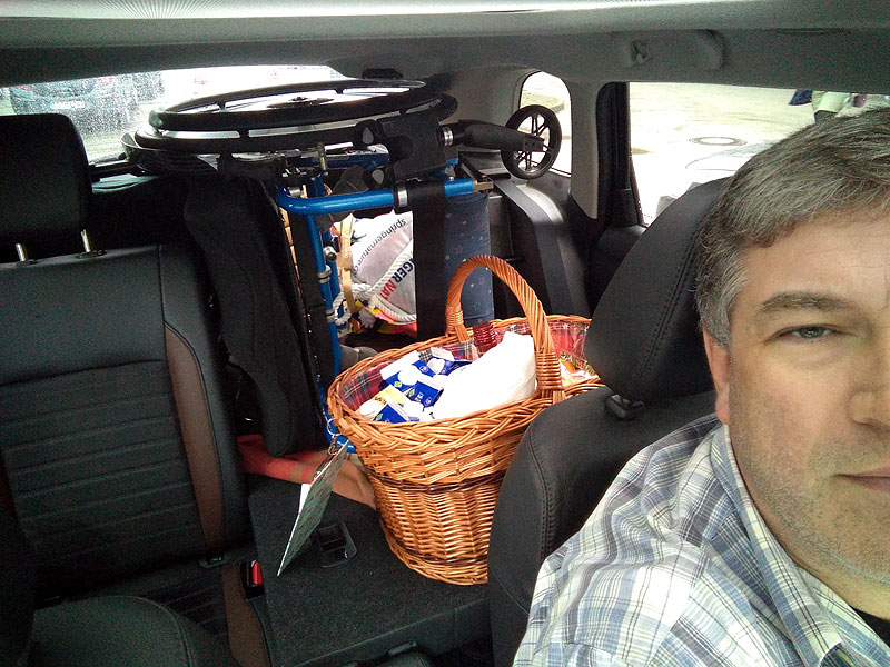 von Carsten: aufgrund des Sauwetters (BTW: Wacken ist direkt um die Ecke) ließen wir den Anhänger malzuhause und transportierten den Rolli direkt im Auto als wir Stephanie in Lüneburg abgeholt haben.