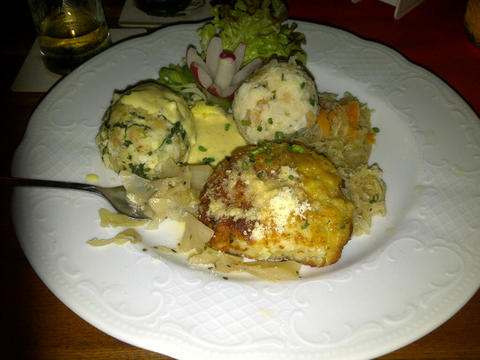 Hier zu sehen ein Spinatknödel mit Käsesauce, ein Kaspreßknödel mit Kraut (vorne) und ein Semmelknödel mit Kraut (hinten). Bei 3 weiteren Gängen verlustierten wir uns an Leberknödel, Bergsteigerknödel mit Kraut, Selchfleischknödel (österr. für Kassler), Kartoffelknödel, Eierschwammerlknödel mit Schwammerlsauce (österr. für Pilze), Speckknödel mit Kraut, Marillenknödel mit Mandelbutter, Zwetschgenknödel nach Art des Hauses, Nougatknödel mit Karamelsauce, Haselnuß-Marzipanknödel und natürlich am klassischen Germknödel. Eigentlich wollten wir noch ab 22 Uhr zur Meschugge-Party im Synagoge-Gemeindezentrum, aber als wir gegen 23 Uhr mit schier platzenden Mägen in den SMART kullerten, kannten wir nur einen Weg --> nach hause !!! Auf der Couch vorm Fernseher ließen wir uns nieder und bewegten nur noch ein Körperteil, den Daumen zum Zappen durch die TV-Landschaft und Musiksender. Zu mehr waren wir einfach nicht mehr in der Lage ! Der Sonntag begann dann heute erwartungsgemäß auch erst um 10 Uhr (sonst sind wir immer schon gegen 7 Uhr wach) und ließen alles ganz langsam angehen. Wie gesagt, ich tippe jetzt noch eine Weile auf der Tastatur rum und Olga ruft den pelzigen Moppelmodells bestimmt unentwegt "Mehr Drama !" zu ;o) Wir hoffen auch ihr hattet einen schönen Sommerausklang und begebt euch frisch gestärkt in den morgigen Wochenalltag. Grüße