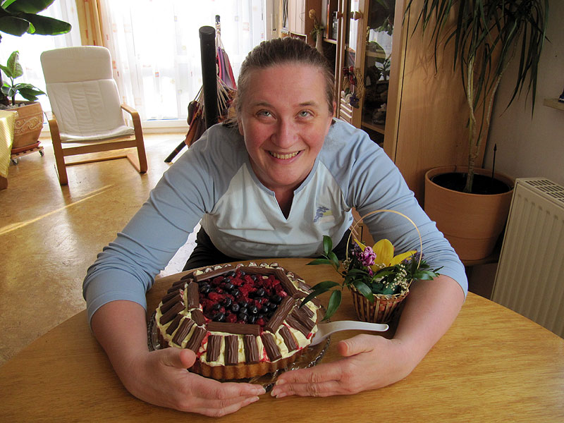 | 01.05.2012 | Den "Tag der Arbeit" lassen Olga, Carsten, Stephanie und der Übernachtungsgast ganz gemütlich mit einem langen Frühstück angehen, bei dem sich natürlich auch ausführlich über die gestrigen Erlebnisse ausgetauscht wird. Als Andrea zum Nachmittagskaffee vorbeikommt, zeigt und verteilt Olga die bislang verheimlichten Mitbringsel aus der Ukraine - dabei sind natürlich auch süße Leckereien aus Schokolade, Keks und Zucker, die zum Teil noch am gleichen Tag verputzt werden. |