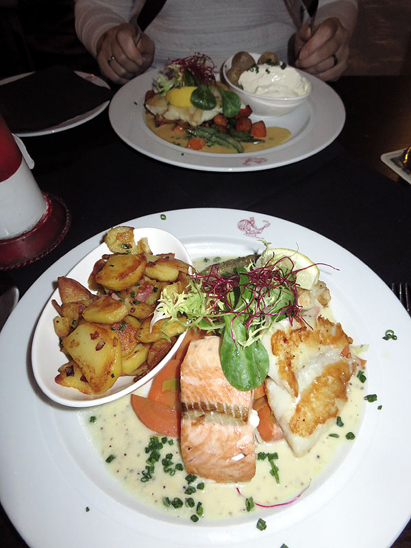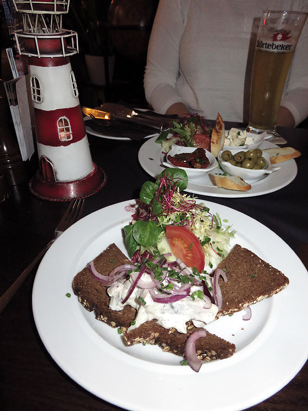 | 25.10.2015 | OLCAsche Heißhungerattacken in der Woche führen dazu, daß die Küche an diesem Wochenende kalt bleibt. Am Samstag werden Carstens Gelüste nach einer Thunfischpizza mit Zwiebeln gestillt, nachdem sie von dem Elbespaziergang mit Anna und Hund beim Haus&Hof-Dönermann vorbeigehen und am heutigen Sonntag geht Olgas großer Wunsch nach Fisch in Erfüllung. Ihren ersten Besuch im Fischrestaurant "Schwindts" bereuen sie keinesfalls, aber mal sehen, was morgen früh die Waage nach dem Gelage mit Vorspeise (Sassnitzer Matjeshappen mit würziger Remoulade und Zwiebelringen auf Schwarzbrot & Marinierter Hirtenkäse, Oliven und getrocknete Tomaten), Hauptspeise (Fischplatte mit Filets vom Zander, Dorsch und Wildlachs an Dijon-Senf Sauce & Gebratenes Heilbuttfilet an Sanddorn-Senf Sauce) und Nachspeise (Sturmsäcke Arkona mit warmen Schattenmorellen, Vanilleeis und Schlagsahne & Kreidefelsen mit Waldbeeren, Schokoladeneis, Baileys und Schlagsahne) zu vermelden hat. |